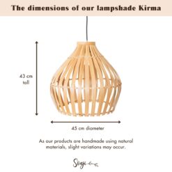Ontdek de magie van traditioneel vakmanschap met de handgemaakte Kirma bamboe lampenkap. De zorgvuldig gerangschikte bamboestrips in elegante klokvorm werpen boeiende schaduwpatronen op uw muren en creëren zo een gezellige sfeer – perfect voor ontspannende avonden. Tegelijkertijd voegt de bamboe plafondlamp een warme, natuurlijke toets toe aan uw huis, waardoor uw ruimte helderder en opener aanvoelt. Elke Kirma lampenkap is vervaardigd door bekwame ambachtslieden, waardoor elk stuk uniek is en een persoonlijke, authentieke charme aan uw interieur toevoegt.