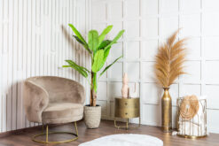 Breng tropische warmte in huis met deze kunst-Bananenboom van 160 cm. De grote, frisgroene bladeren staan elegant omhoog en hebben fijne nerven, waardoor ze bijna niet van echt te onderscheiden zijn. De realistische stam geeft de boom een natuurlijke uitstraling en versterkt het exotische karakter.