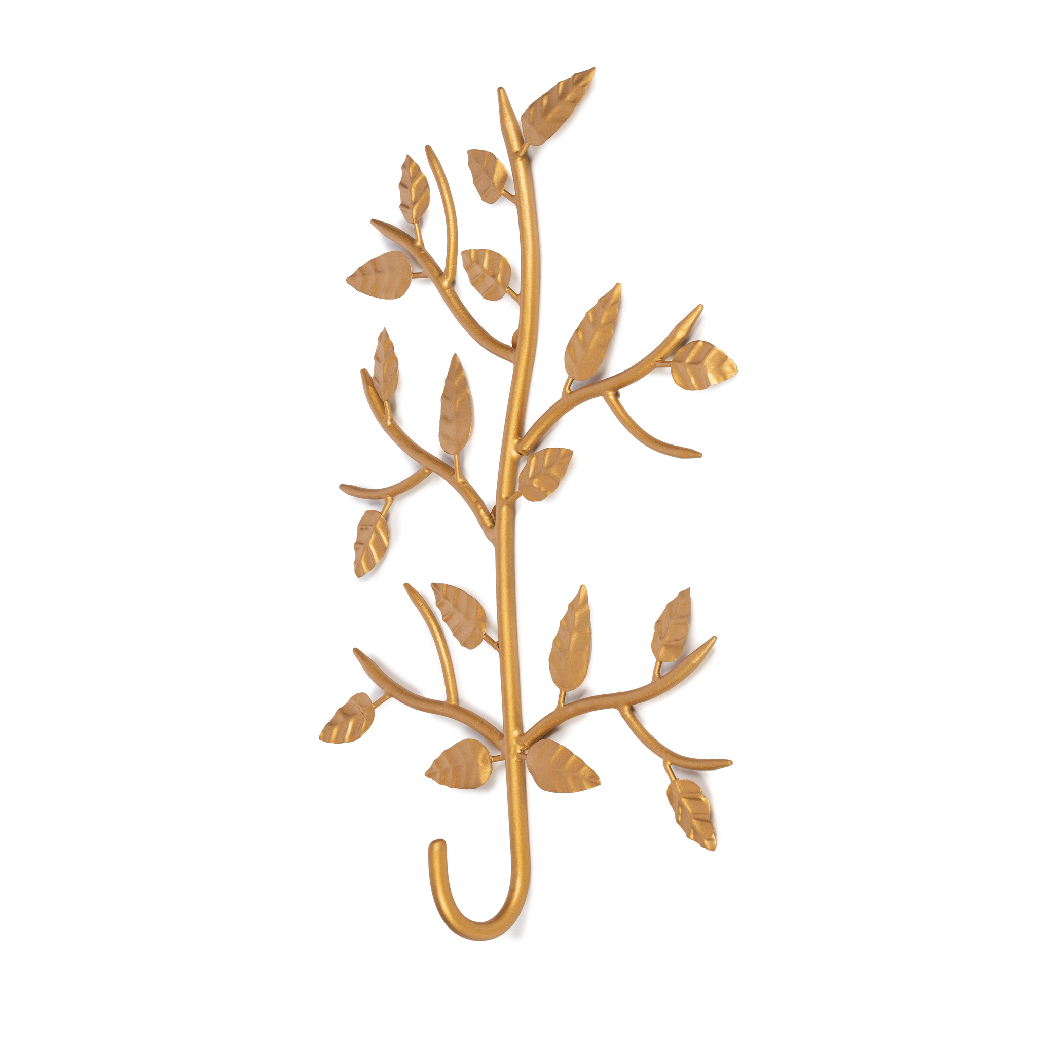 Wandhaak Britte — simpel, mooi en praktisch. Deze metalen haak heeft een warme goudkleur die een subtiel botanisch tintje aan je muur geeft. Ideaal als kapstok voor een jas, tas of sjaal, maar ook gewoon als sfeervolle wanddecoratie in hal, slaapkamer of toilet.