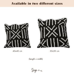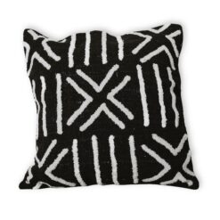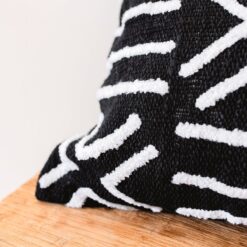 • Tijdloos ontwerp: het witte handgestikte patroon op zwart, handgeweven katoen creëert een verfijnd contrast dat elke moderne ruimte naar een hoger niveau tilt