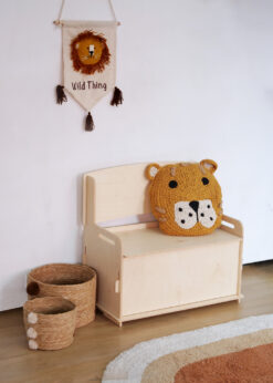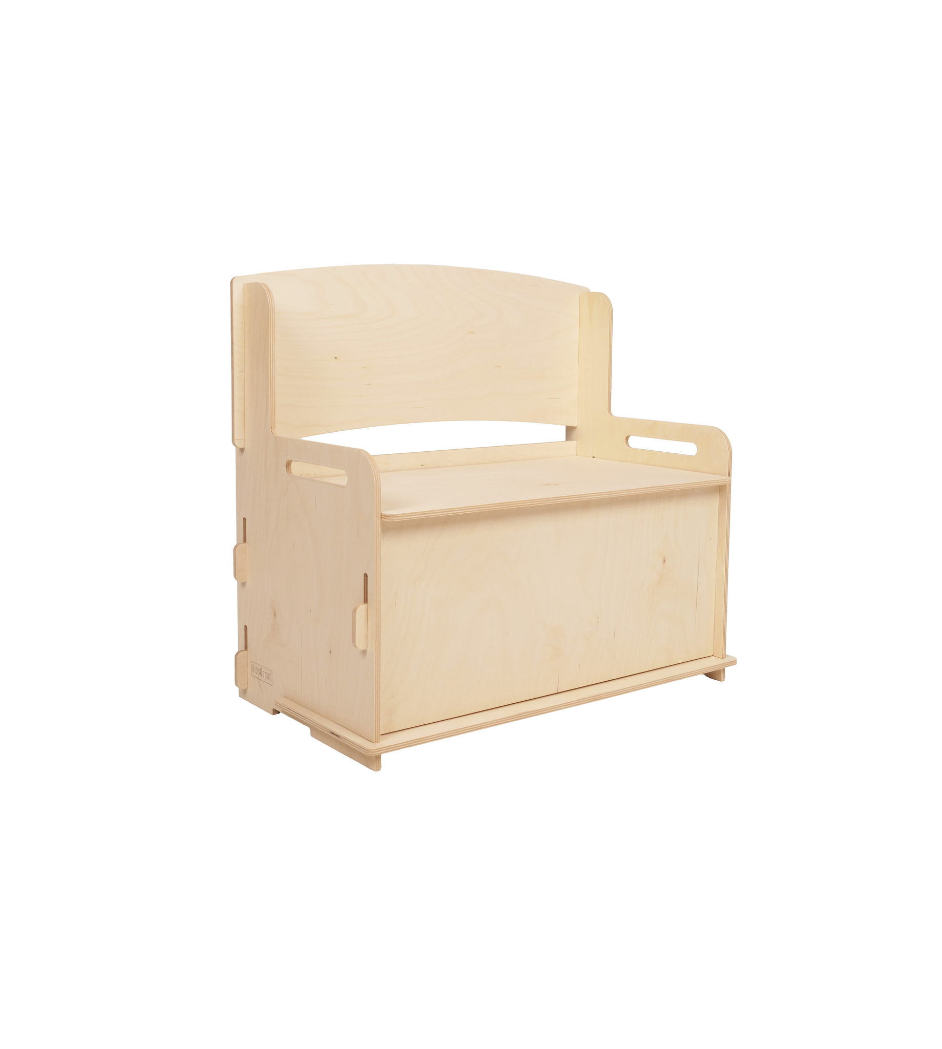 Een vriendelijk, praktisch bankje voor in de woonkamer, hal of kinderkamer. Gemaakt van FSC-gecertificeerd hout met een gelakte afwerking in een natuurlijke kleur. De zitting klapt open en biedt nette opbergruimte voor kussens, schoenen of speelgoed. Zithoogte 30 cm — comfortabel als bijzetzitje of voor kinderen. Snel en eenvoudig te monteren, zonder schroeven. Onderhoud: afnemen met een droge of lichtvochtige doek. Eerlijk en doordacht ontwerp, een bewuste keuze voor wie op zoek is naar functionaliteit en duurzame materialen.