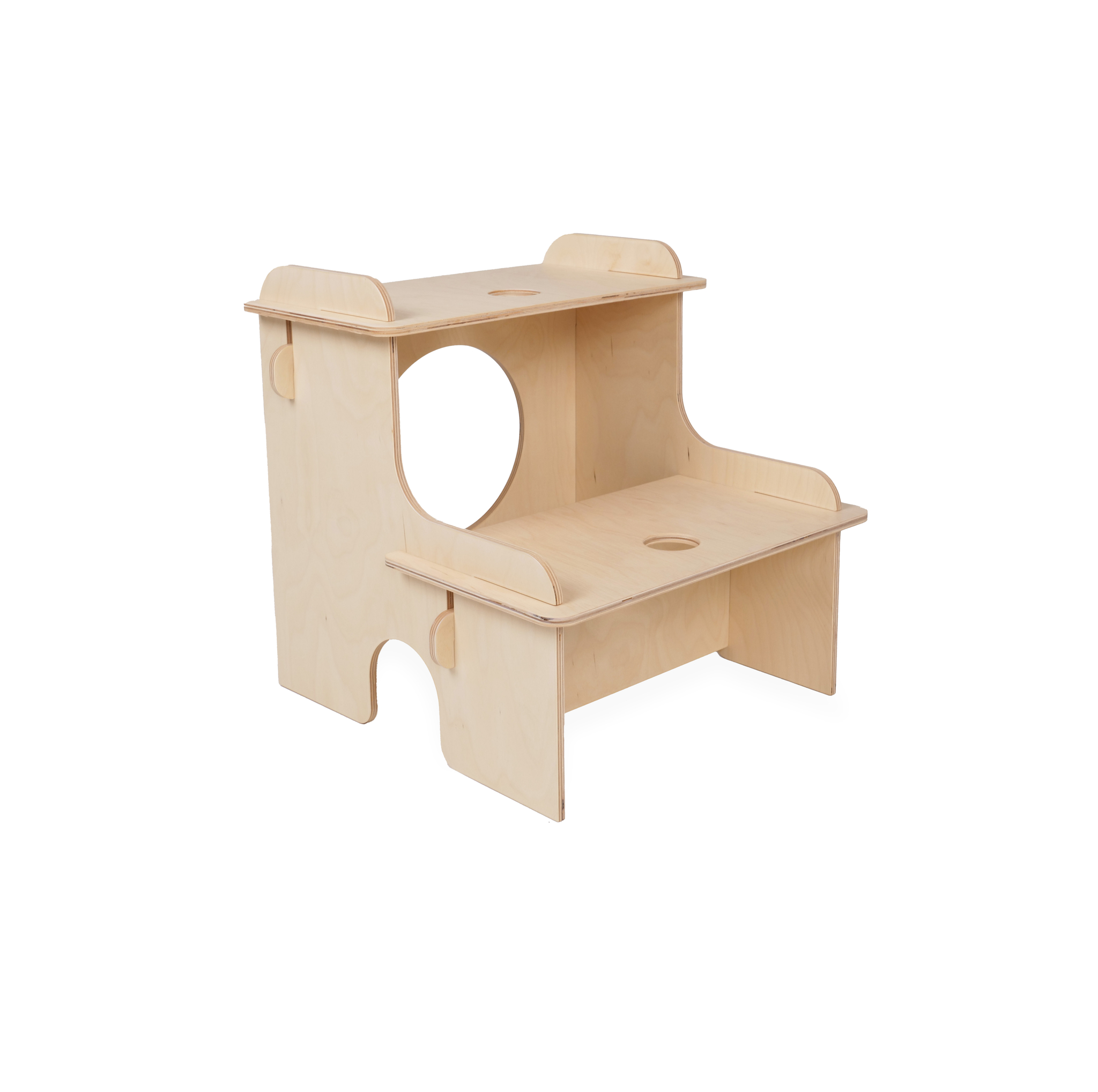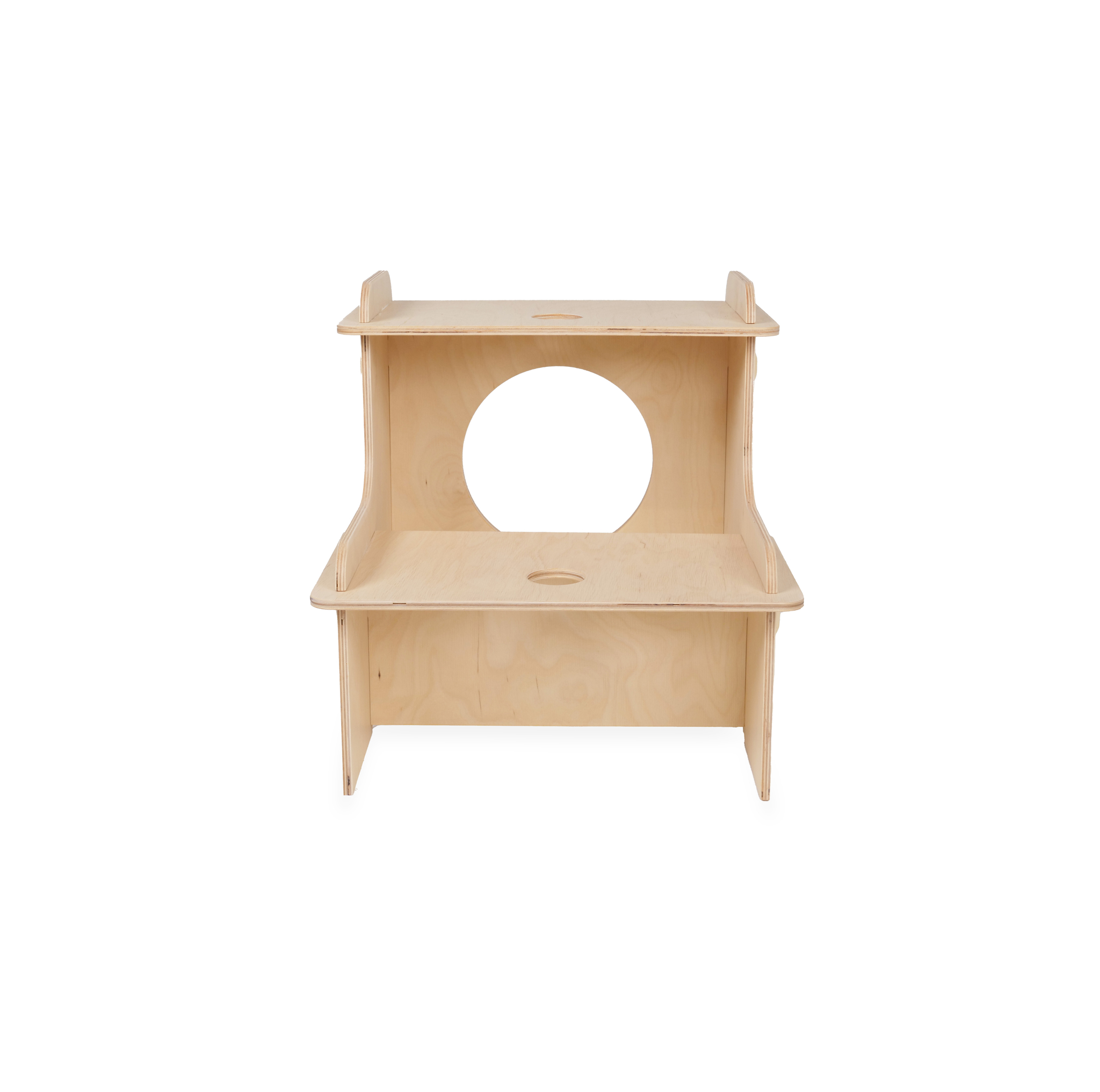 Compact, eerlijk en veelzijdig: dit krukje heeft twee zithoogtes — 20 cm en 40 cm (bovenste trede) — en functioneert ook prima als opstapje. Snel en eenvoudig te monteren zonder schroeven. Gemaakt van FSC-gecertificeerd hout met een transparante lak die de natuurlijke kleur en nerf behoudt en het hout beschermt. Stevig en stabiel, licht van gewicht en geschikt voor keuken, kinderkamer of als extra zitje. Voor bewuste kopers: duurzaam materiaal en tijdloze eenvoud.
