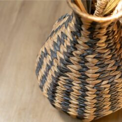 De gevlochten vaas is bijzonder geschikt als boho-style woonaccessoire voor droogbloemen, maar kan ook prima gebruikt worden voor snijbloemen als je een waterdichte bak als binnenbak gebruikt.