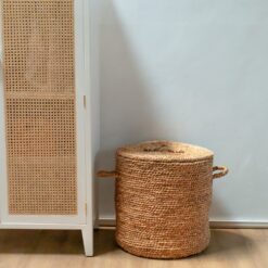 In de enorme wasmand Aman berg je onzichtbaar het wasgoed van je hele gezin op. De ronde mand is geweven van zeer robuuste waterhyacint, die elke uitdaging in het huishouden kan weerstaan, hoe zwaar deze ook wordt. Hij heeft twee praktische handvatten die je helpen de mand te dragen. Het materiaal is niet chemisch behandeld en krijgt zijn rijke, warme kleur door het drogen onder de tropische Indonesische zon. De mand verspreidt een gezellige, rustieke charme in uw badkamer of slaapkamer.