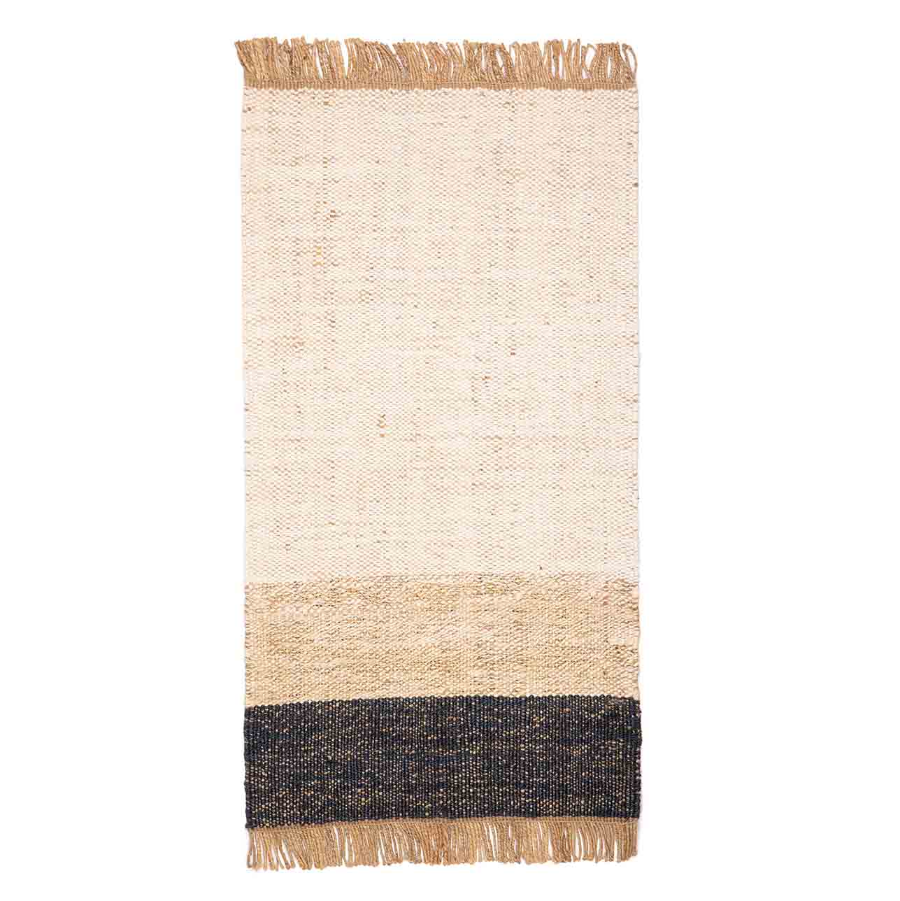 Rechthoekig vloerkleed van jute en wol, waarin de robuuste structuur van jute samenkomt met de zachte, warme eigenschappen van wol. Verkrijgbaar in blauw en bruin, past het harmonieus in elke kinderkamer of speelruimte en geeft het tegelijk een rustige, volwassen uitstraling. Duurzaam en stijlvol uitgevoerd, ideaal voor wie comfort en natuurlijke materialen waardeert.