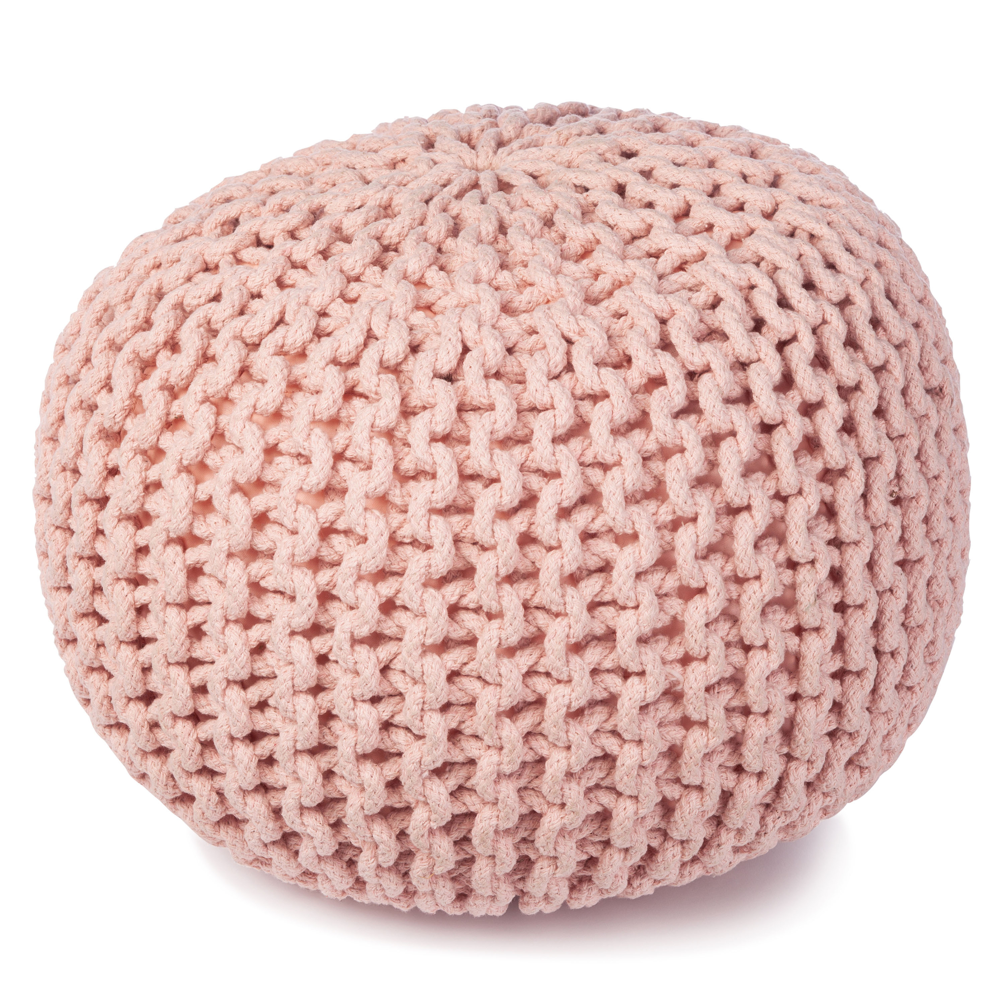 Kleur: lichtroze — een zachte pasteltint die mooi aansluit bij een Scandinavische woonstijl. Afmetingen: 40 x 40 x 32 cm, compact genoeg voor kleine kamers maar groot genoeg als zitplek of voetsteun.
