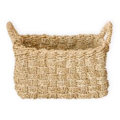 De Batik opbergmand kenmerkt zich door zijn unieke weving, waarbij zeegras niet simpelweg in strengen naast elkaar wordt geweven, maar in een opvallend en groot ruitpatroon. Deze creatieve weeftechniek geeft de mand niet alleen een bijzondere stabiliteit, maar ook een sculpturale en interessante uitstraling.