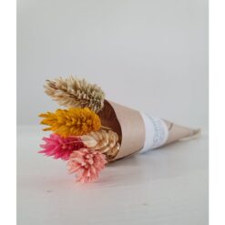 Vrolijke mini bosjes droogbloemen een leuk attentie of cadeautje