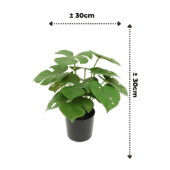 Voordelen van een Monstera Kunstplant 30cm ✅ Onze kunstplanten gaan nooit dood✅ Onze kunstplanten zijn hypoallergeen✅ Onze kunstplanten vorm je eenvoudig naar wens✅ Onze kunstplanten blijven altijd de gewenste afmeting✅ Onze kunstplanten hebben geen verzorging nodig en kunnen overal staan Afmetingen Monstera Kunstplant 30cm Hoogte kunstplant: 30cmDiameter kunstplant: 30cmHoogte pot: 11cmDiameter pot: 12,5cm Deze Monstera kunstplant van 40cm heeft de perfecte afmeting om te stralen op je dressoir of bureau. De Monstera kan je ook wel kennen onder de namen gatenplant en we hoeven je natuurlijk niet uit te leggen waarom.. Bloempotje erbij? Deze Monstera kunstplant wordt standaard geleverd met een zwarte “kweekpot”. Op zoek naar een mooiere partner voor je Monstera kunstplant? Bekijk dan hier al onze bloempotten