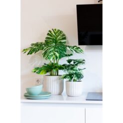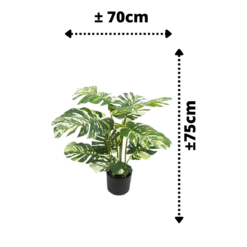 Voordelen van een Monstera Kunstplant 75cm ✅ Onze kunstplanten gaan nooit dood✅ Onze kunstplanten zijn hypoallergeen✅ Onze kunstplanten vorm je eenvoudig naar wens✅ Onze kunstplanten blijven altijd de gewenste afmeting✅ Onze kunstplanten hebben geen verzorging nodig en kunnen overal staan Afmetingen Monstera Kunstplant 75cm Hoogte kunstplant: 75cmDiameter kunstplant: 65cmHoogte pot: 12,5cmDiameter pot: 15cm De Monstera is op zijn heerlijke rijpe zoete vrucht na behoorlijk giftig, maar daar hoef je met deze Monstera niet bang voor te zijn! Met zijn 75 centimeter heeft hij een mooie lengte en groter wordt ‘ie toch niet. Of had je nog niet gezien dat het een kunstplant was? Bloempotje erbij? Deze Monstera kunstplant wordt standaard geleverd met een zwarte “kweekpot”. Op zoek naar een mooie partner voor je kunst Monstera?Bekijk dan hier al onze bloempotten