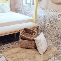 Met zijn compacte vorm en eenvoud past de rechthoekige Tanimbar-mand perfect in uw open planken of kasten. Met zijn twee formaten is er zeker een geschikt exemplaar voor uw doeleinden. Of het nu in de badkamer is voor wasgoed, handdoeken en toiletpapier of in de woonkamer of kinderkamer voor het sorteren van voorwerpen – laat uw creativiteit de vrije loop!