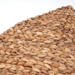 De waterhyacint is een tropische waterplant die groeit op rivieren en meren. Het komt eigenlijk uit Zuid-Amerika, maar werd ook geïntroduceerd in Zuidoost-Azië. Daar wordt het als een onkruid beschouwd omdat het zich ongelooflijk snel vermenigvuldigt en hele watermassa’s kan bedekken met een tapijt van bladeren. Het daaruit voortvloeiende gebrek aan licht en zuurstof zorgt ervoor dat al het leven onder water afsterft. Daarom moeten de planten regelmatig worden verwijderd. Om de planten klaar te maken voor verdere verwerking worden de bladeren afgesneden en worden de dikke stengels drie tot zeven dagen in de zon gedroogd. Het resultaat is een overvloedige, duurzame grondstof voor veel vlechtwerk hier bij Soeji!
