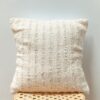 Het kussen is zorgvuldig met de hand geknoopt van delicate rotanvezels, die een unieke combinatie van zachtheid en robuustheid bieden. Dit zorgt voor de ideale balans tussen comfort en duurzaamheid. De vulling is gemaakt van lokaal geproduceerde materialen uit Indonesië, zoals kokosvezels en katoen, en is extra dik zodat het kussen zijn vorm behoudt na verloop van tijd.