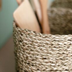 De Bhinneka mand is verkrijgbaar in drie verschillende maten en twee verschillende materiaalcombinaties. De eenvoudigere, éénkleurige variant van zeegras past met zijn natuurlijke uitstraling in elke woonomgeving en kent geen grenzen aan uw creativiteit.