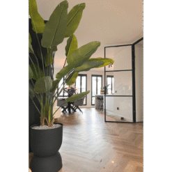 Voordelen van een Strelitzia kunstplant ✅ Onze kunstplanten gaan nooit dood✅ Onze kunstplanten zijn hypoallergeen✅ Onze kunstplanten vorm je eenvoudig naar wens✅ Onze kunstplanten blijven altijd de gewenste afmeting✅ Onze kunstplanten hebben geen verzorging nodig en kunnen overal staan Afmetingen Strelitzia Kunstplant 180cm Hoogte kunstplant: 180cmDiameter kunstplant: 120cmHoogte pot: 15cmDiameter pot: 17cm Deze Strelitzia kunstplant is 180cm groot en daarmee een mooie lengte voor een grote ruimte. De Strelitzia Kunstplant 180cm heeft mooie grote bladeren en een niet van echt te onderscheiden stam. Komt deze plant bij jou in de woonkamer te staan of misschien wel op kantoor? Bloempotje erbij? Deze Strelitzia kunstplant wordt standaard geleverd met een zwarte “kweekpot”. Op zoek naar een mooiere partner voor deze grote Strelitzia?Bekijk dan hier al onze bloempottenToch liever een andere Strelitzia kunstplant? Die vind je hier