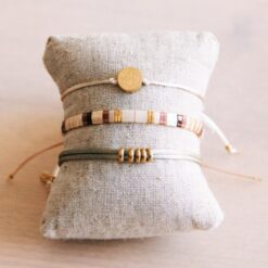 De tilabead armband in de kleuren cognac, zalm, lichtroze en vergulde kralen heeft schuifknopen en is daarom verstelbaar.