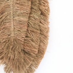 Onze onmisbare wanddecoratie Tipin geeft je huis een exotisch tintje. Met een indrukwekkende lengte van een halve meter maakt hij een krachtig statement en laat hij een blijvende indruk achter in elke kamer. Voor Tipin zijn raffiavezels gevlochten in de vorm van palmbladeren en afgerond met een houten kraal als accent. Deze unieke combinatie van materialen en vakmanschap creëert een exotische esthetiek die zeker de aandacht zal trekken.