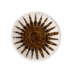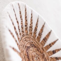 Een echt hoogtepunt voor natuurlijk leven in boho-stijl is onze ronde wanddecoratie Madala van geweven bananenvezels en een wit borduursel in zonne-look.