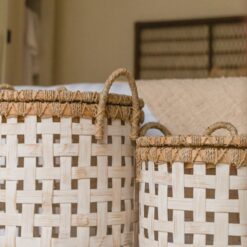 Een praktische dekselmand van witte bamboe in twee verschillende maten – dat is onze Iraya. De moderne lichtkleur past bijzonder goed bij woonstijlen met veel licht hout en textieldecoraties zoals wandkleden, kussens en dekens.