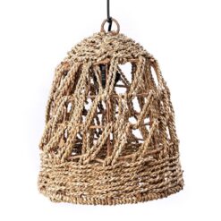 De robuuste lampenkap van zeegras wordt geleverd zonder snoer en lampen, maar je kunt deze eenvoudig in de gewenste maat en kleur kopen in elke bouwmarkt.