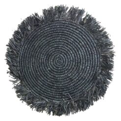 Ambon is een handgemaakte placemat gemaakt van een bijzonder hoogwaardig en mooi materiaal, de gedroogde en geverfde zwarte bladeren van raffia. Dankzij de weelderige franjes springt hij meteen in het oog.